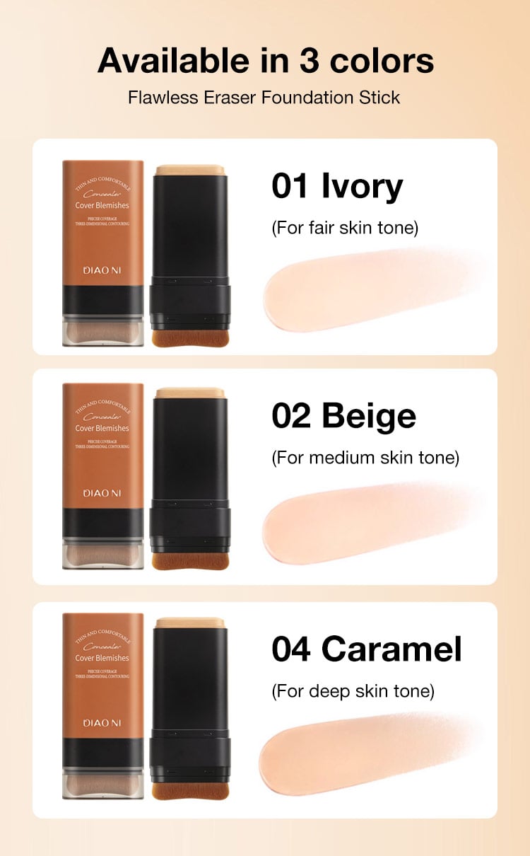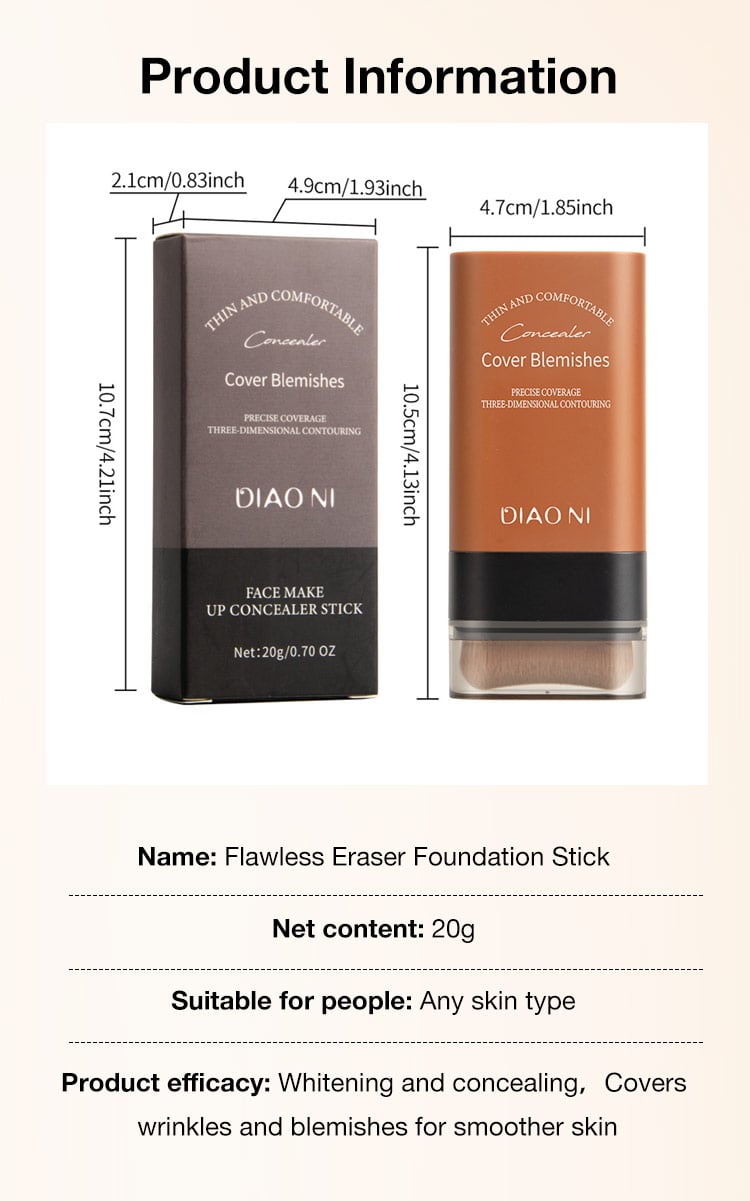 2024 K-beauty No.1 - Flawless Eraser Foundation Stick - Powerful concealer/16h makeup lasting/Bulit-in concealer brush - Get Korean flawless and radiant skin easily