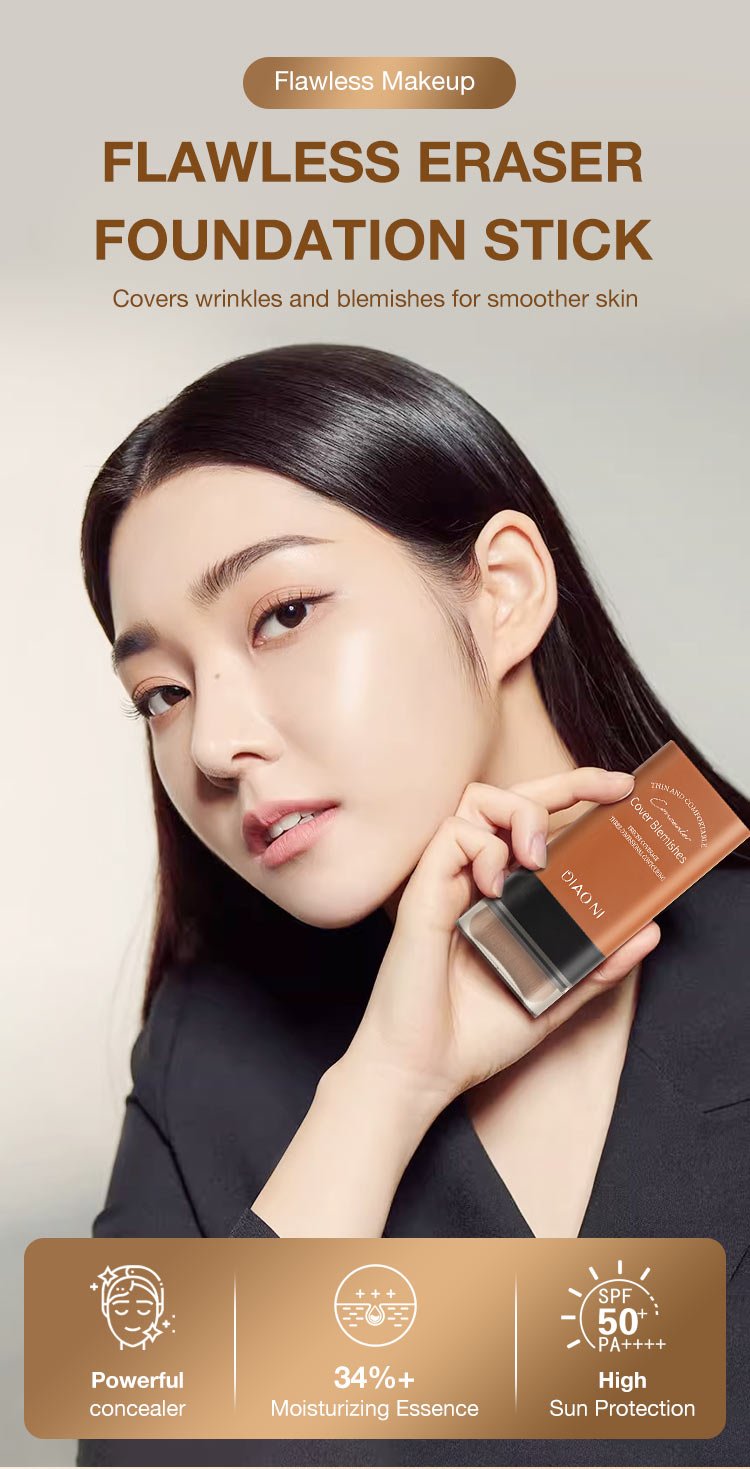 2024 K-beauty No.1 - Flawless Eraser Foundation Stick - Powerful concealer/16h makeup lasting/Bulit-in concealer brush - Get Korean flawless and radiant skin easily